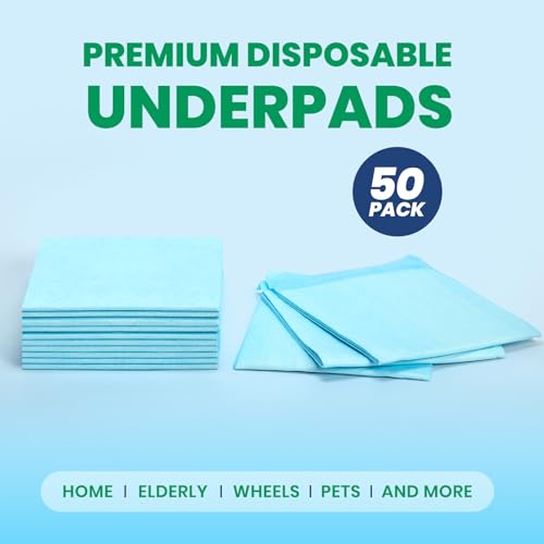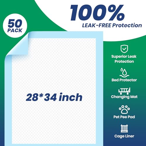 Chucks Pads Disposable [50-Pack] Underpads 28×34 Incontinence Chux Pads Absorbent Polymer Protective Bed Pads, Pee Pads for Kids, Adults & Elderly, Leak Proof (Large)